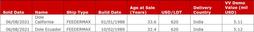 The vessels scrapped were two 32 and 34 year old Feedermaxes, sent for HKC “Green Recycling” at Alang, India.