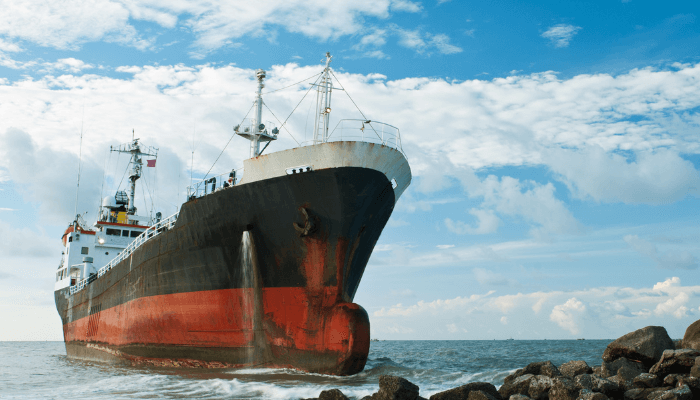 A cargo vessel, named CEG Orbit, reportedly ran aground off the Isle of Man as the chief officer needed to visit the washroom.