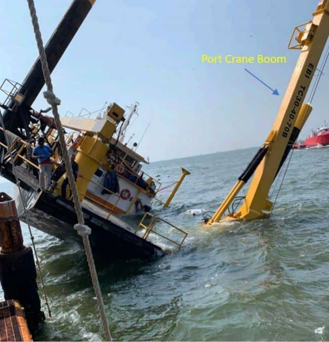 Marine Accident Brief 20/36 notes once the 22,500-pound port crane boom was moved from its cradle (horizontal position) to the vertical position, the boom’s center of gravity shifted about 17 feet.