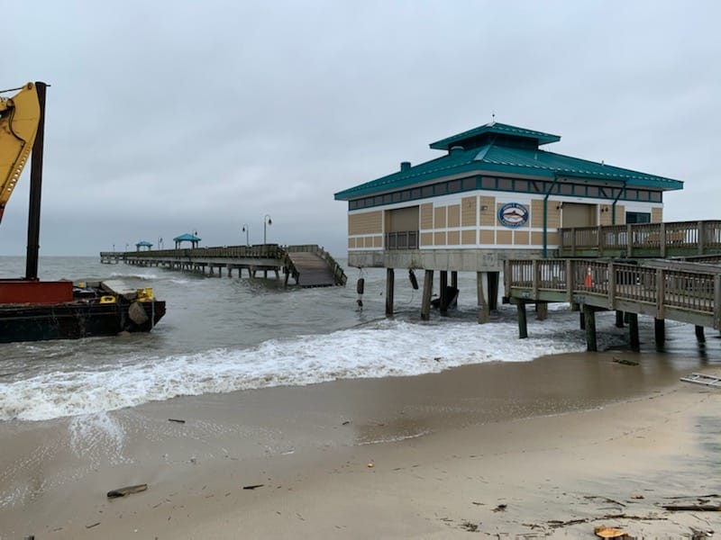 The 700-foot-long James T. Wilson Fishing Pier, formerly the Buckroe Fishing Pier, was built at a cost of $2.5 million and opened in 2009. It replaced a wooden pier that was destroyed by Hurricane Isabel in 2003. The pier was constructed of several 40-foot concrete spans, and, at the time of the accident, served recreational fishing and tourist traffic. The pier was normally open 24/7 but was closed on the evening of Saturday, November 16, due to weather.