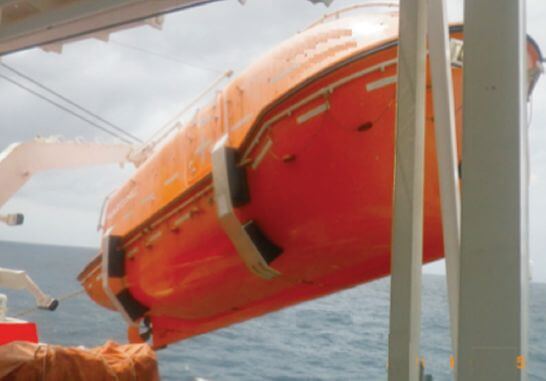 While at anchor, the deck crew was testing the port and starboard lifeboat davits, lowering the boats to deck level without a crew on board,