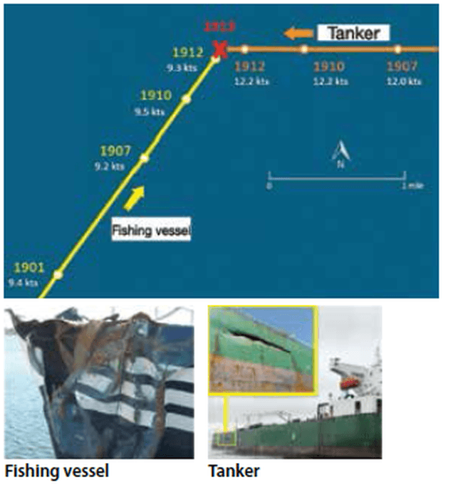 A partially loaded tanker was underway at about 12 knots in a safety fairway. An OOW and lookout were on duty and the helm was