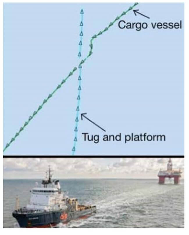 A tug was towing an oil production platform on a line about 1,000m long in good visibility and sea conditions. A close quarters situation was