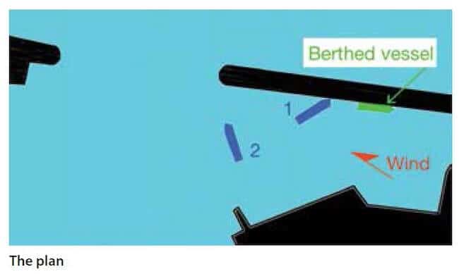 A small tanker was manoeuvring to leave port without tug assistance. The departure manoeuvre began at twilight, with winds from the south of about 10