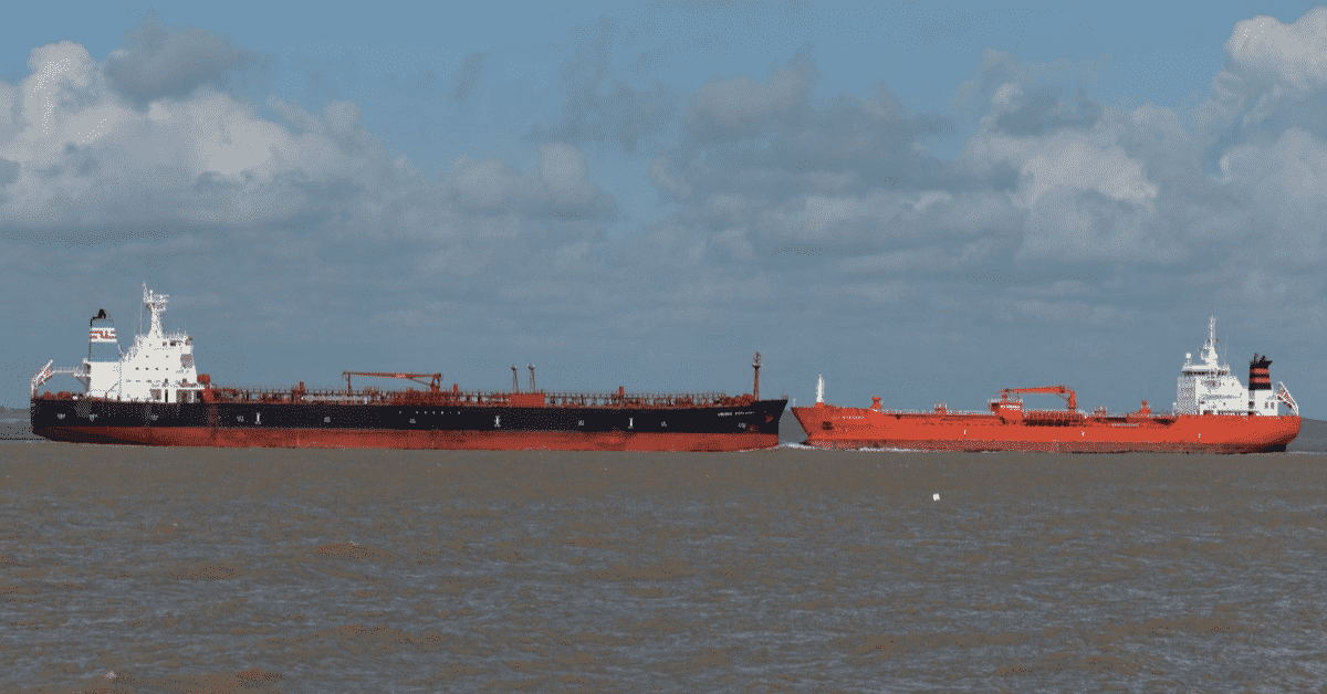 A container ship (A) had closed to approximately 8 cables astern of a loaded tanker (B) in a restricted waterway. The pilots of the two