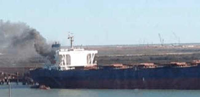 A bulk carrier was being loaded when the ship’s fire detection system activated. Soon after, fire alarms began sounding throughout the ship and many (though