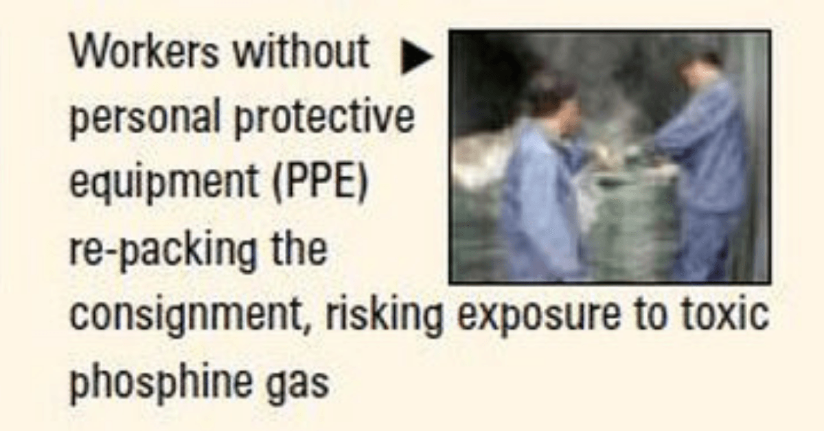 A container vessel loaded some containers of Aluminium Phosphide (IMDG Class 4.3, UN No. 1397) from an Asian port. The consignment used plastic bags as