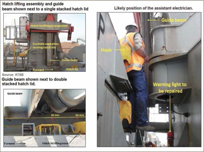 The vessel was in port and routine ’travelling manoeuvres’ of the vessel’s gantry crane by a ship’s officer were being undertaken. The assistant electrician, probably standing near