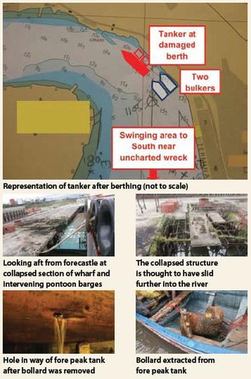 At 1840 on 20 December 2013, the 93m chemical tanker Key Bora made heavy contact with the western approach jetty at Alexandra Dock, Hull. The