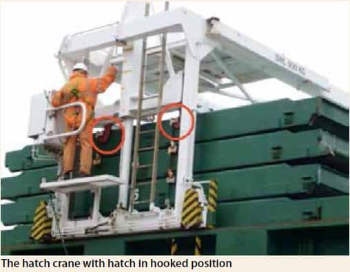 While closing the hold a hatch fell out of the hatch crane and into the hold. This then caused the hatch crane to come off