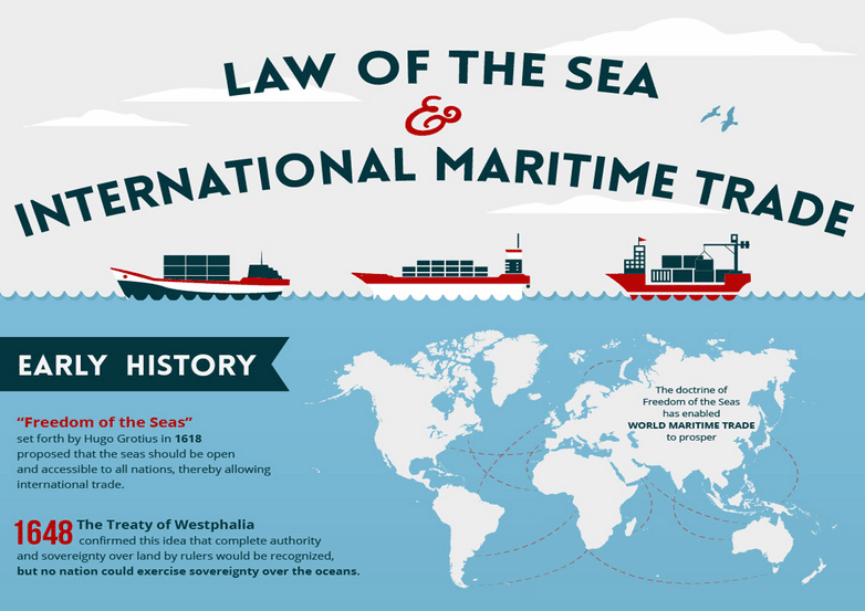 Maritime trade officially began in the year 1648, when the Treaty of Westphalia confirmed the ideas set out by Hugo Grotius, who said that the