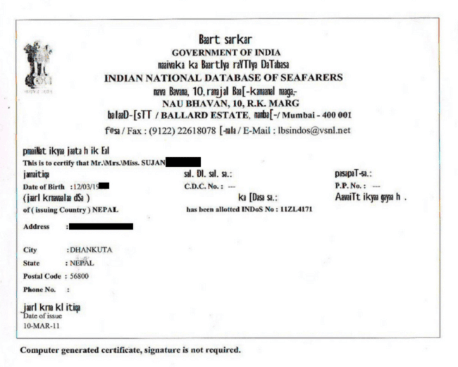 INDos number can be considered equivalent of a complete identity for every seafarer in India. It is a computerized national database that includes important information