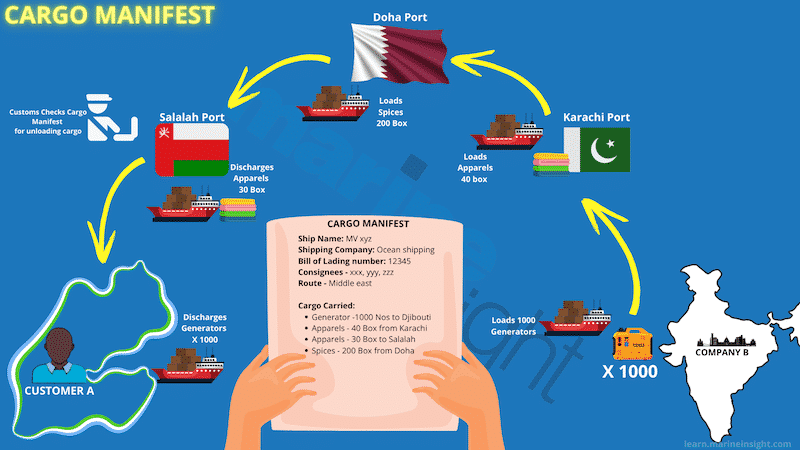A cargo manifest is a consolidated list of all the cargo that is on board a cargo vessel. The list of all cargo carried on
