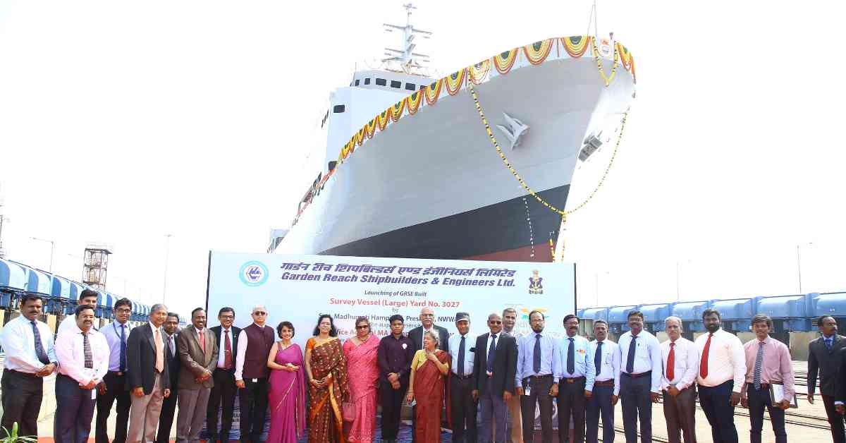 The Indian Navy introduced ‘Ikshak ‘, the third of the four large survey vessels assigned, being constructed by GRSE/L&T was introduced at Kattupalli, Chennai, on