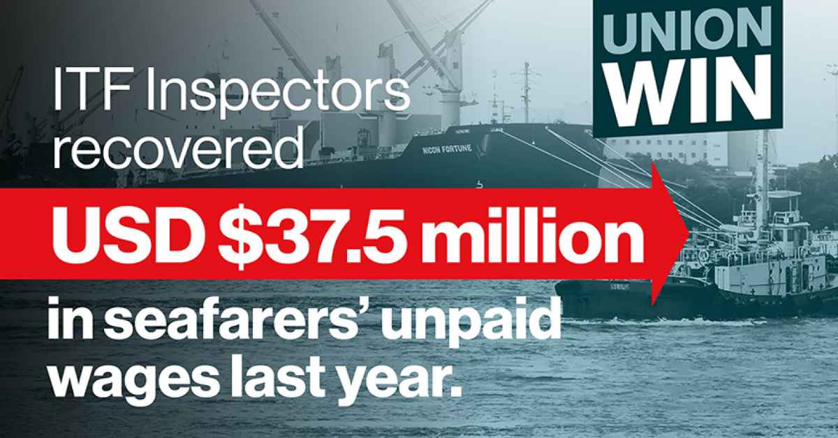 Last year, union ship inspectors recovered more than USD $37 million in unpaid wages owed to seafarers, the International Transport Workers’ Federation (ITF) has revealed