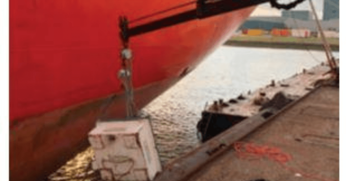 A vessel was moored at a shipyard to repair an exhaust gas scrubber overboard discharge pipe. As part of the repair process, divers installed a