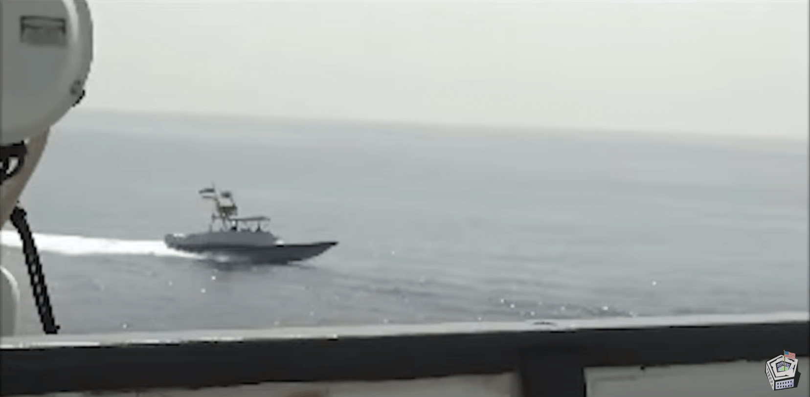 In a video released by the US Navy, the Iranian Guard’s Boghammer can be seen speeding towards the patrol ship USS Sirocco, in the strategic
