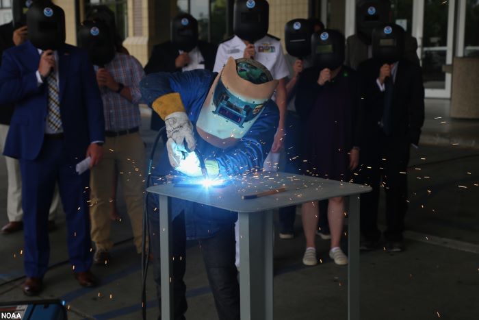 NOAA and Thoma-Sea Marine Constructors, LLC (TMC) held a keel-laying ceremony in Houma, Louisiana, today for NOAA’s newest oceanographic research ship, Oceanographer. During the ceremony,