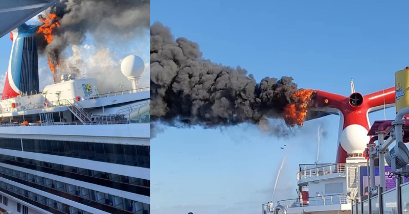 Several videos went viral on social media platforms on Thursday. These showed thick black smoke and flames from the smokestack of a Carnival Cruise ship