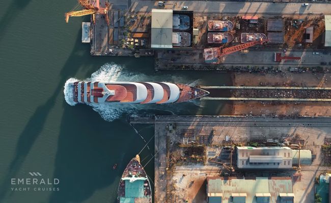 The brand new ocean-going super yacht Emerald Azzurra from Emerald Cruises has floated out this weekend at the Halong Shipbuilding Company in Vietnam, marking just