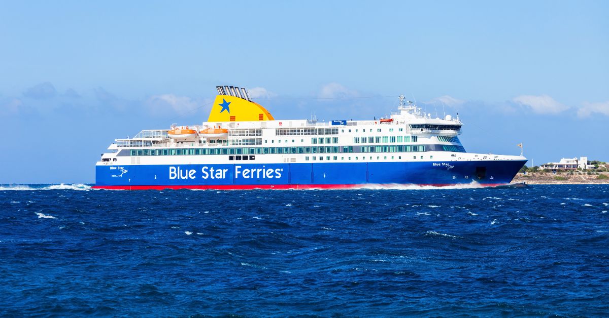The left-facing maneuver of the Greek Star Star Chios in the port of Mesta with Cpt. Giannis Sigalas. Blue Star Chios inaugurated the new summer