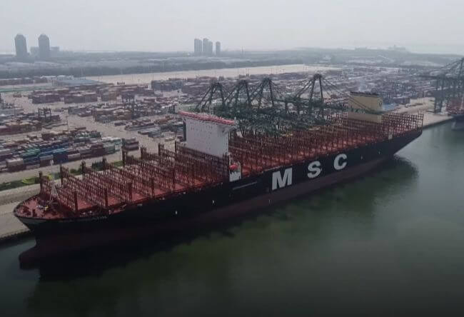 MSC Gulsun, the world’s largest container vessel by carrying capacity, set sail from north China’s port city of Tianjin on Monday, heading for northwestern Europe.