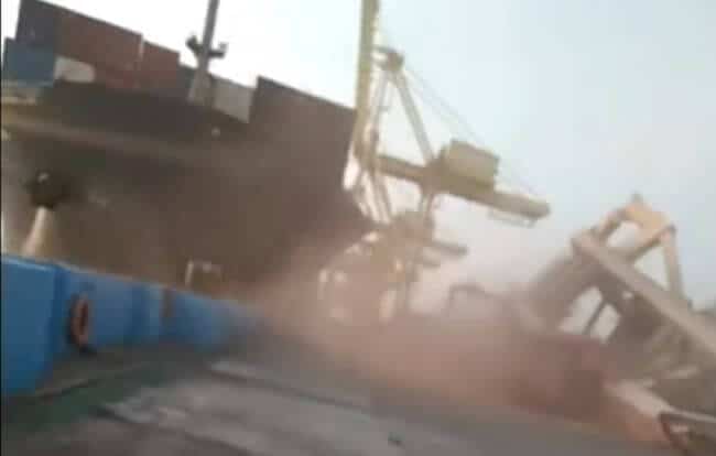 The Container carrying vessel ‘Soul of Luck’ crashes into the gantry cranes at the terminal of Semarang Port, in the city of Java province, Indonesia.
