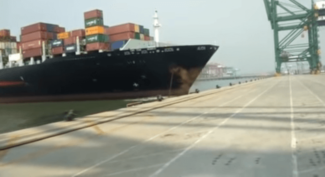 Navi Mumbai: A container ship hit the jetty at Jawaharlal Nehru Port (JNPT dama) causing damage to a portion of the jetty. Reference: THE NEWS –