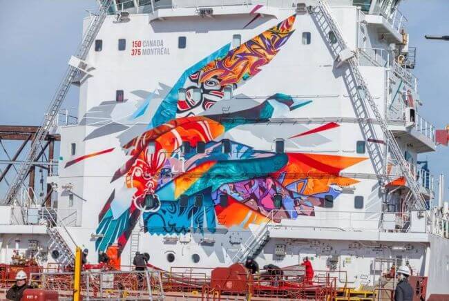 Over the course of three weeks in February-March 2017, four urban Montreal artists worked together to create the mural that celebrates the 150th anniversary of