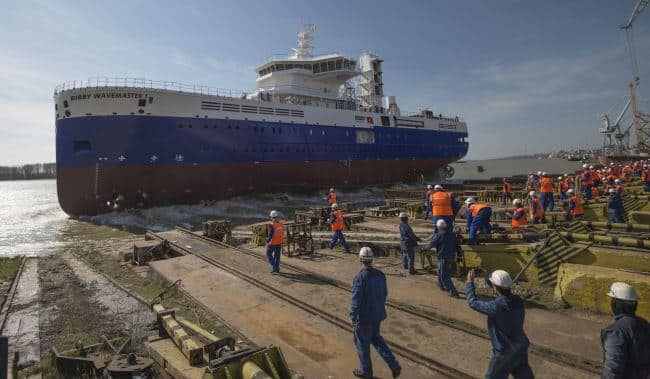 The pioneering Bibby WaveMaster 1, the first of Damen’s purpose-built Service Operations Vessels (SOV) with Walk-to-Work (W2W) capability, was officially launched at Damen Shipyards Galati