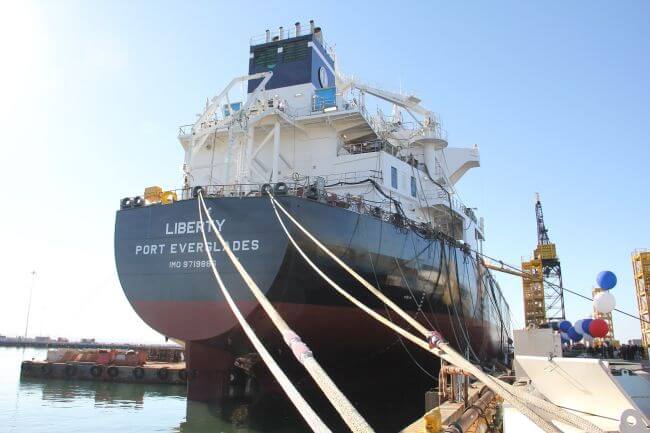 On Saturday, December 17, General Dynamics NASSCO christened the Liberty, the third ECO Class tanker under contract with customer SEA-Vista LLC. Mrs. Debora Denning, wife