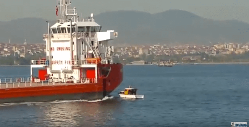 A brief video posted online shows a small boat colliding with a cargo ship in the Gulf Of Izmit. The video has been posted by