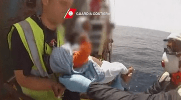 Watch a young baby being rescued from a ship carrying thousands of immigrants after falling ill. As many as 1,500 migrants have already died trying