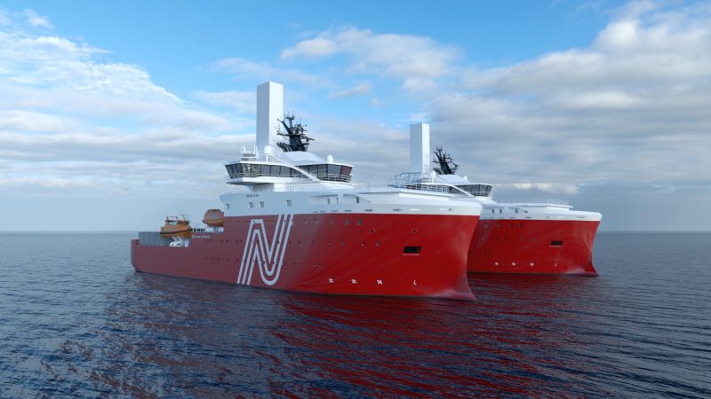 The design is based on a highly versatile platform for sustainable offshore windfarm support operations, focusing on onboard logistics, security, comfort, and superior operability. The 85-meter ships will have accommodation for 87 persons on board and will be equipped with a height-adjustable motion-compensated gangway with elevator system and a height-adjustable boat landing system. The vessels will be prepared for installation of battery solutions.