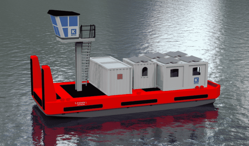 Furthermore, due to the modular approach and lean assembly method, KOTUG reduced the construction time by more than half compared to traditional pusher boats. The E-Pusher type M can push barges with up to 4.000 tons of cargo. The E-Pusher Series consists of three types: Small, Medium and Large, respectively for transportation in inner cities, over short distances and the larger inland waterways.