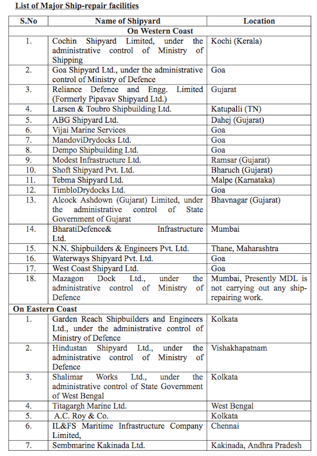 The details of major ship-repairing facilities at present in the country, location-wise is as below:-