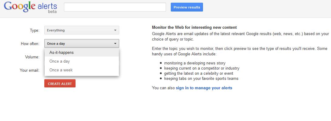 Go to Google Alerts