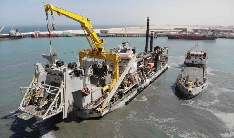 The brand-new Cutter Suction Dredger Willem van Rubroeck, which has a total installed cutter power of 41,346 kW, started its very first assignment in Mauritania. In the port of the capital Nouakchott, the vessel is working for developer ARISE Mauritania, on the deepening of the access channel, the port basin and the new berth alongside the new ARISE port terminal.