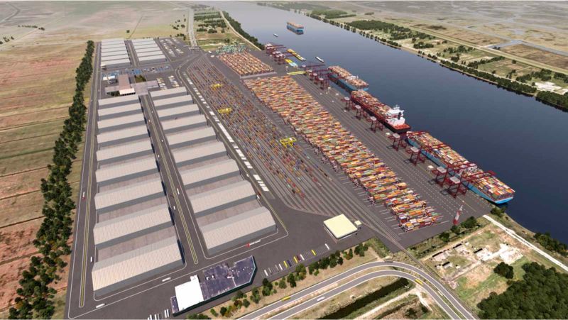 The facility is in the early stages of development as a 50’ (15.24m) deep water depth, state-of-the-art container terminal in Plaquemines Parish, Louisiana. Located on the Mississippi River just 50 nautical miles from the Gulf of Mexico, the gateway port will cater to exporters and importers who could tap into the multimodal routing options of rail, truck, inland marine and air.
