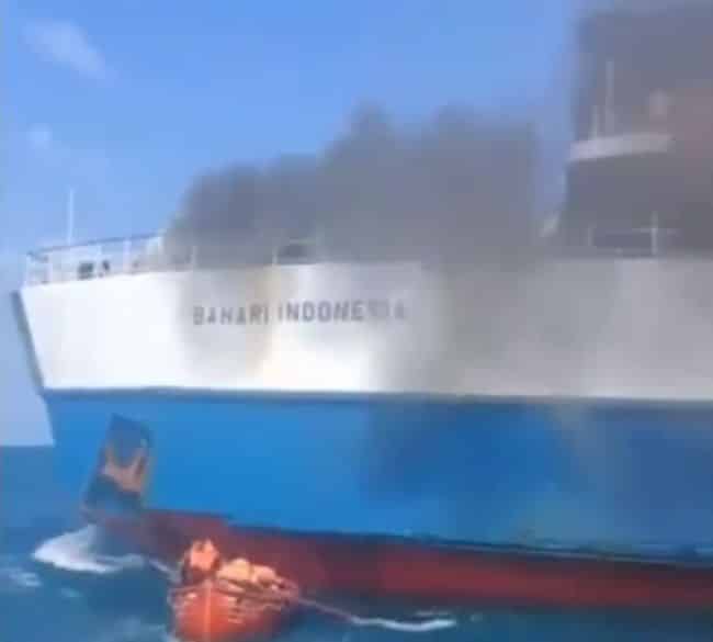 On Tuesday evening, KM Bahari Indonesia, a cargo ship, allegedly had a fire onboard as per Indonesian authorities.