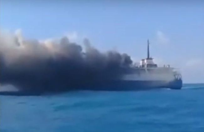 The fire is assumed to come from a vehicle onboard the ship. The crew escaped the ship using lifeboats, before being rescued by Km Samudera Jaya Abadi.