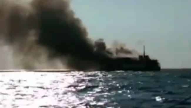 The ship was reported to have been carrying some 18 trucks as well as two minibuses when the incident happened.