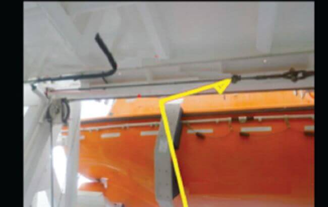 An investigation found that the wire clamp on the davit’s wire rope, which is instrumental in keeping the load balance between the davit arms, had slipped. Further investigation revealed the threads of the clamp’s tightening nut were very worn.