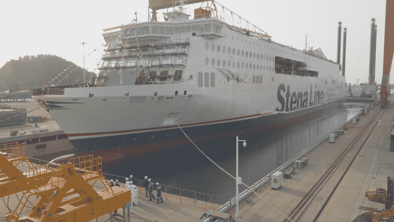 The new vessel that took to the water for the first time on 24 May is the fourth out of five new next-generation E-Flexer vessels that are designed and built-in collaboration with the sister company Stena RoRo at the CMI Jinling Weihai Shipyard in China. The vessels are among the world’s most modern and efficient RoPax vessels. The three first vessels have already started to operate on the Irish Sea during 2020 and 2021.
