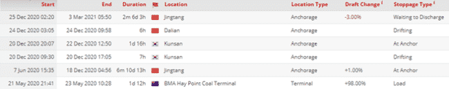 Many vessels ended up diverting away from the congested areas in China, to locations such as Japan, India and South Korea, with some performing necessary crew changes after months of waiting. The Topas (92,700 DWT Post Panamax) was one of the longest waiting laden vessels carrying coal from Hay Point (see Figure 2). The vessel spent a total of over 8 months waiting off Jingtang, with a short crew change in South Korea in between anchorage stoppages.