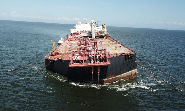 The 2005 built massive tanker vessel which is anchored in the Gulf of Pariah and used to store oil is listing severely and can capsize.