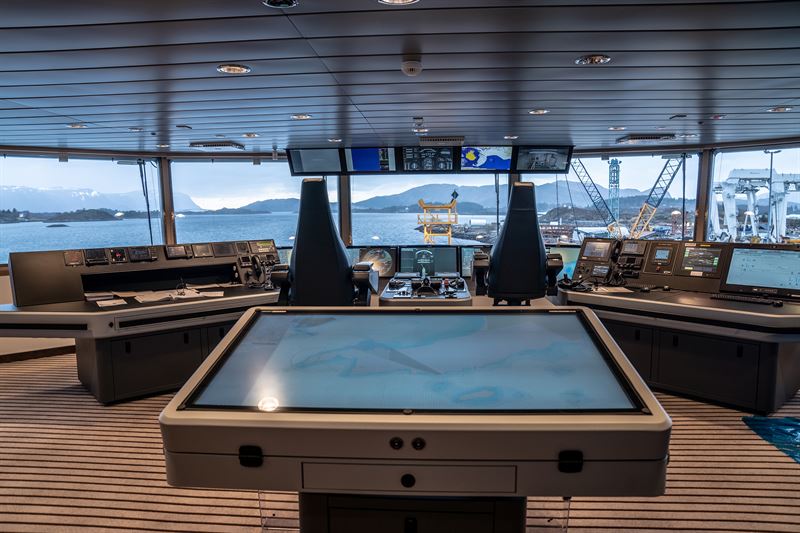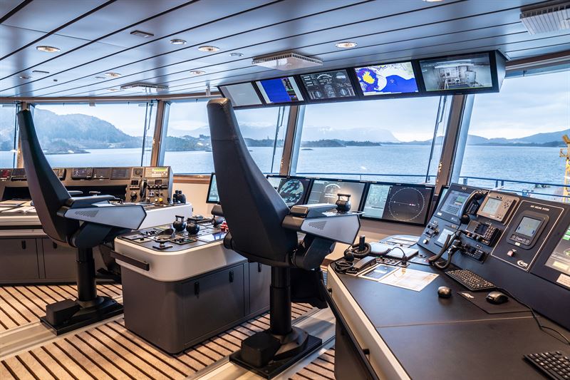 The vessel has been fitted with a complete package of Wärtsilä bridge consoles and the Nacos Platinum Integrated Navigation System consisting of ten Multipilot Platinum Navigation workstations, four Datapilot Platinum information display, a 55” Planning station, a dual Trackpilot Platinum integrated track steering system, Dynamic Positioning System, Sound Reception System, uninterruptable power system (UPS), a weather station, Voyage Data Recorder, Bridge Alarm Management and Bridge Navigational Watch Alarm System (BNWAS).