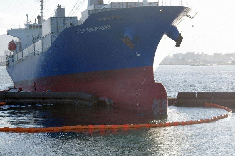 Patrol boats have constructed an oil fence that can hinder the spread of oil leaks from the freighter. A salvage enterprise that has been contracted by the shipowner is trying to remove the vessel.