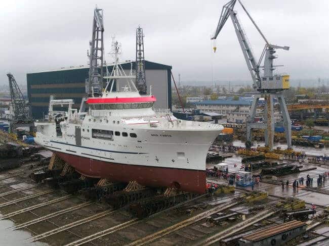 On 9th November, Damen Shipyards Galati launched a Fishery Research Vessel (FRV) 7417 for the Angolan Ministry of Fisheries. The sponsor of the vessel, named Baía Farta, was Dra. Isabel Cristóvão, director of Gabinete de Estudos, Planeamento e Estatística.