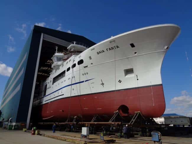 Baía Farta features a basic design from Skipsteknisk. Her construction has been an international project, involving input from Damen Shipyards Gorinchem and Damen Schelde Naval Shipbuilding in the Netherlands, with building taking place at Damen Shipyards Galati in Romania.
